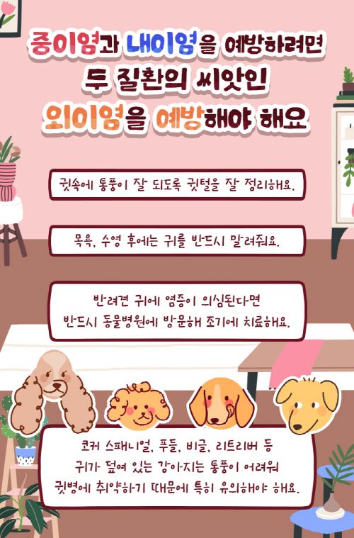 귓병에 취약하기 때문에 특히 유의해야 해요.