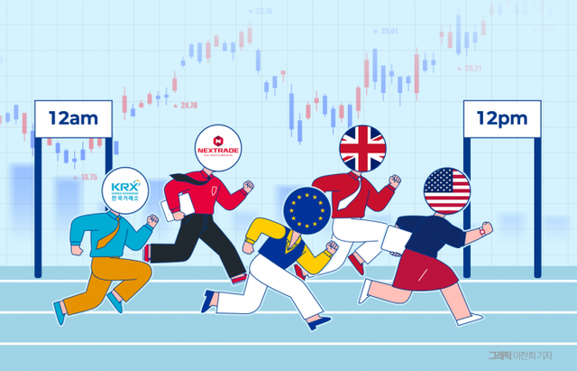 거래소가 이처럼 24시간 거래연장에 속도를 내는 이유는 미국 주요 거래소들이 24시간 거래연장을 추진하고 있기 때문이다. 미국 나스닥은 내년 하반기부터 24시간 거래를 시작한다. 미국 최대 전자거래소 중 하나인 뉴욕증권거래소 아카(NYSE Arca)는 22시간 거래 연장을 승인받았다.