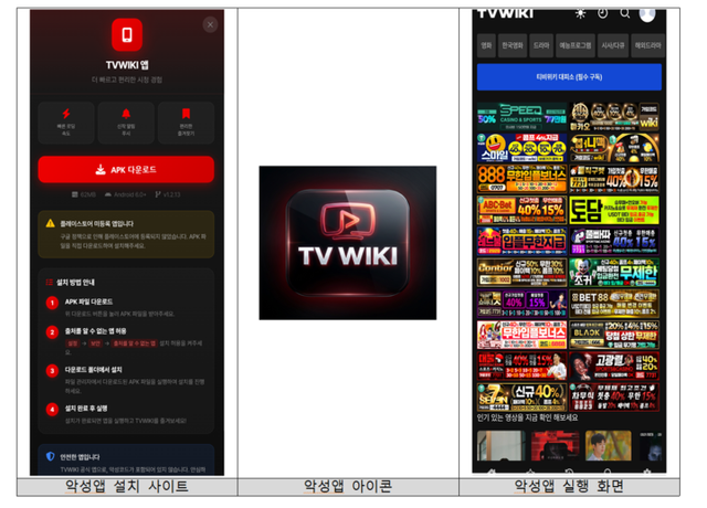 29일 업계에 따르면 KT는 최근 공식 홈페이지 내 ‘불법 스트리밍 앱으로 인한 개인정보 유출 및 문자 무단 발송 주의 권고’ 공지를 통해 “티비위키 등 불법 동영상 스트리밍 사이트를 통해 악성앱 설치를 유도하는 사례가 탐지됐다”며 이같이 밝혔다.