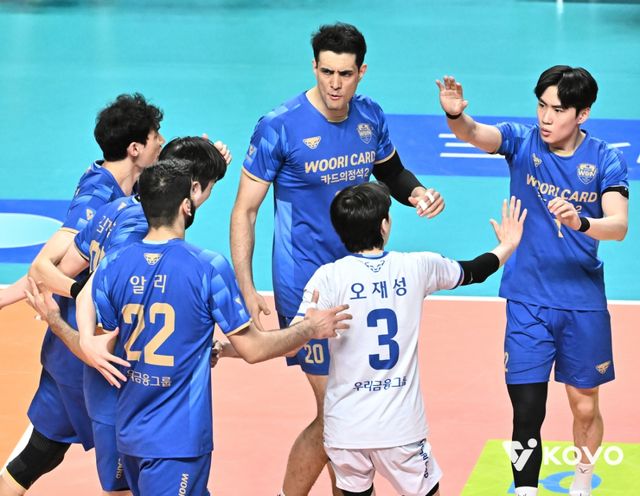 기선제압에 성공한 팀은 우리카드였다. 1세트 13-16에서 알리의 블로킹, 아라우조의 백어택, 황승빈의 후위공격자 반칙으로 3득점하며 16-16 균형을 맞췄다.