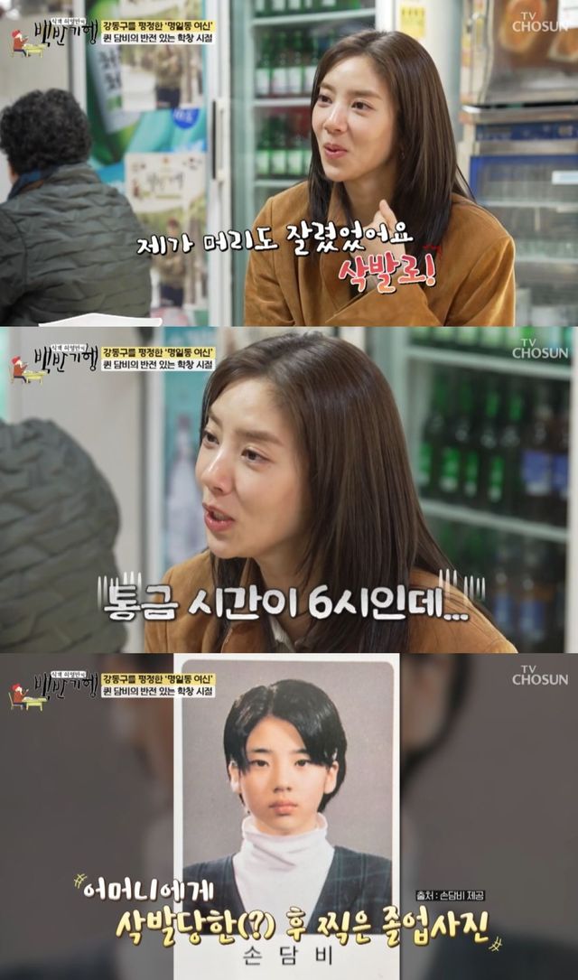 그러나 학창시절이 순탄하지는 않았다고. 손담비는 "저희 어머니가 진짜로 엄하시다. 제가 머리도 삭발로 잘린 적이 있고, 통금 시간이 6시였다. 누가 6시에 집에 들어가냐"며 엄격했던 집안 규칙을 털어놨다.