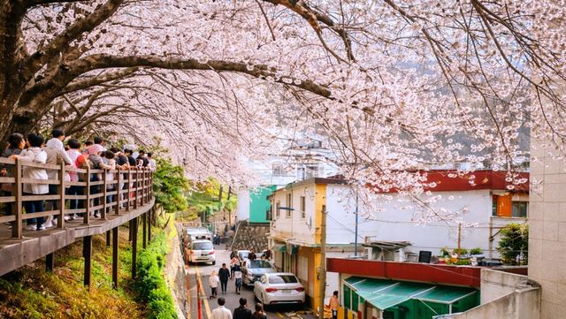 부산의 떠오르는 벚꽃 성지를 소개한다. 2017년 낡고 좁았던 길에 편안한 데크로드를 설치하고 야간 조명을 더해 '벚꽃 문화길'로 재탄생한 이곳은 어디일까?