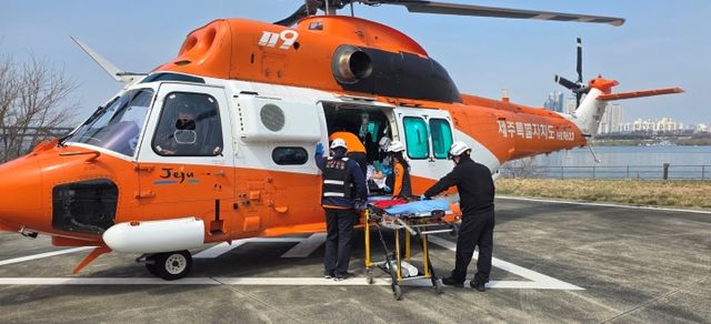 제주도소방안전본부는 지난 24일 제주소방 소속 119항공대가 체외막형 산화장치(ECMO, 에크모) 적용 환자를 심장이식을 위해 수도권 상급병원으로 이송했다고 30일 밝혔다.