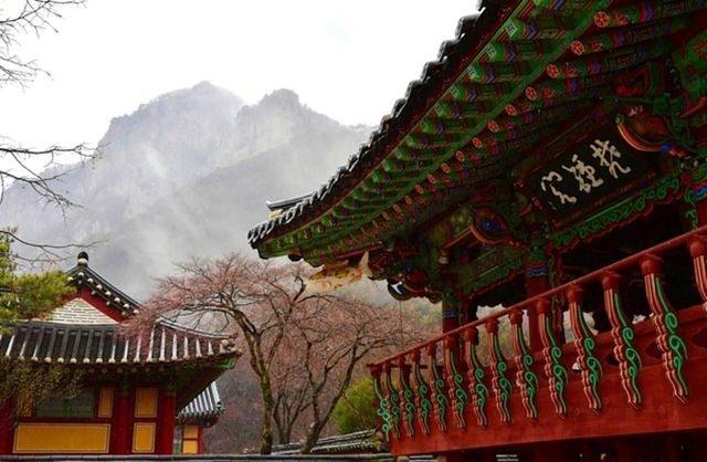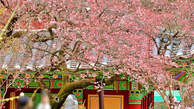 백양사의 봄을 대표하는 주인공은 단연 고불매다. 대웅전 옆 의상전 앞뜰에 자리를 잡은 이 매화나무는 우리나라 4대 매화 중 하나로 손꼽히며 고고한 기품을 자랑한다. 1700년경부터 스님들이 정성껏 가꾸어 온 역사를 간직하고 있으며, 사찰을 옮겨 지을 때도 함께 자리를 옮겨 지금까지 그 생명력을 이어오고 있다. 1947년 부처님의 근본 가르침을 기리는 고불총림이 결성되면서 '고불매'라는 이름을 얻었으며, 매년 3월 말이 되면 진분홍빛 홍매화가 만개해 산사 전체에 은은한 향기를 퍼뜨린다. 아래에서 세 갈래로 갈라져 뻗어 나간 줄기의 곡선과 선명한 꽃잎의 조화는 천연기념물이라는 명성에 걸맞은 우아한 아름다움을 보여준다.