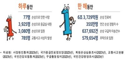2023년 한 해 동안 손상으로 외래진료나 입원을 경험한 사람은 약 355만 명(전 국민의 6.9%)으로 집계됐다.