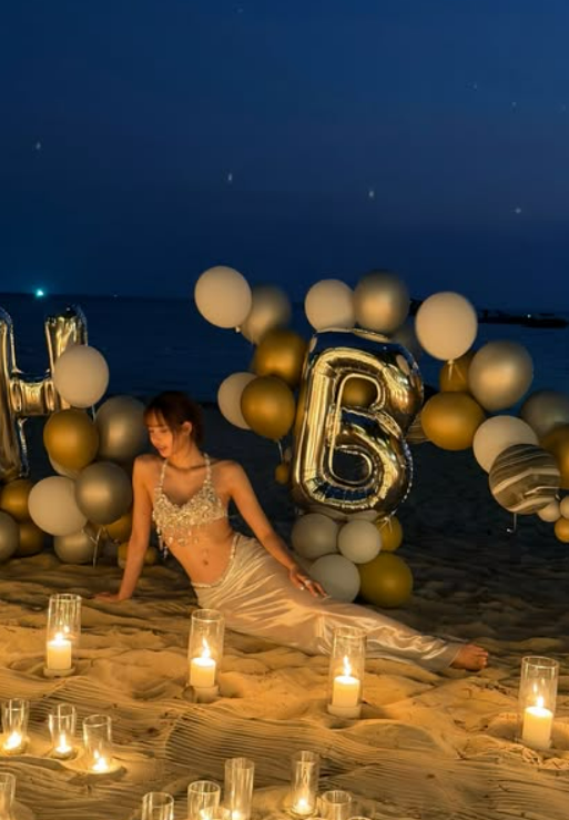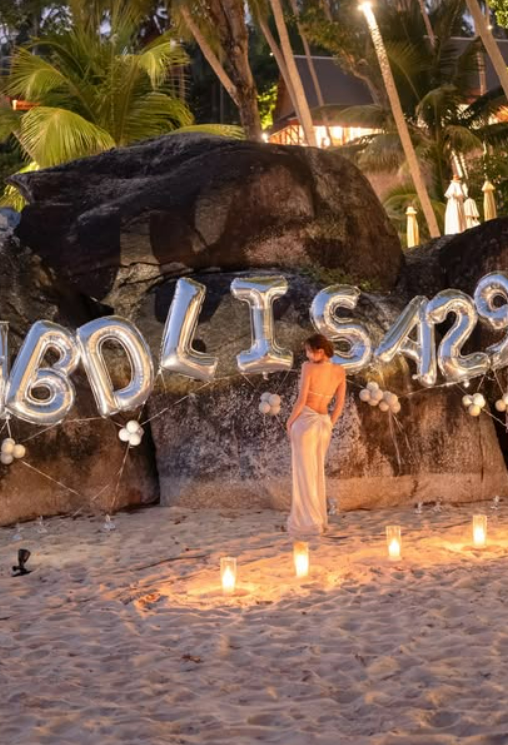노을이 지는 바닷가를 배경으로 선 리사는 화려한 비즈 장식이 돋보이는 홀터넥 브라톱과 실키한 롱 스커트를 매치해 고혹적이면서도 우아한 자태를 드러냈다. 또한 모래사장 위에는 대형 풍선 장식과 수많은 캔들이 놓여 낭만적인 분위기를 연출했다.