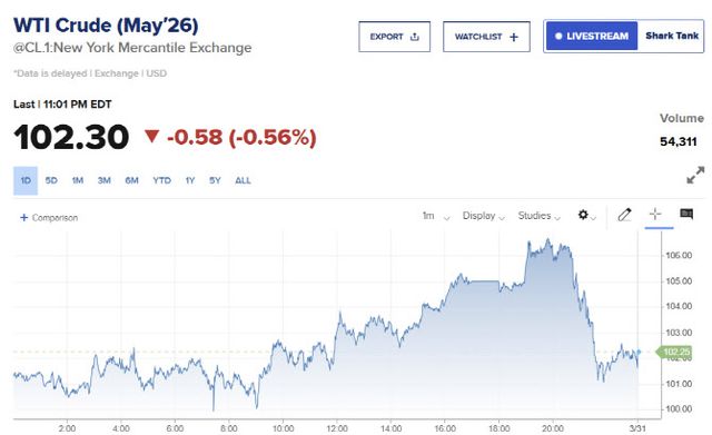 해협 봉쇄가 계속되더라도 트럼프 대통령이 이란에 대한 군사작전을 끝낼 의향이 있다는 WSJ의 이날 보도 이후 금융시장은 빠르게 반응했다. 블룸버그통신에 따르면 스탠더드앤드푸어스(S&P)500 선물은 1% 상승했고, 서부텍사스산원유(WTI)는 배럴당 102달러 아래로 내려서며 1% 하락했다. WTI는 이날 2022년 이후 4년만에 종가 기준 배럴당 100달러를 돌파했으며, 3월 한 달간 50% 이상 급등해 2020년 5월 이후 최대 월간 상승폭을 기록했다. 일부 금융 분석가들은 해협 차질이 장기화할 경우 유가가 배럴당 200달러까지 치솟을 수 있다고 내다봤다. 미 국채는 강세를 이어갔고, 달러는 주요 10개국(G10) 통화 대비 약세를 보였다. 금 가격은 1.4% 올라 온스당 4580달러 선에서 거래됐고, 은은 3% 급등했다.