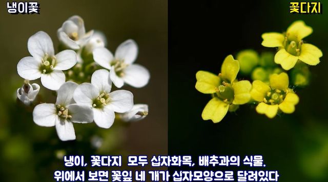 냉이는 흰색의 작은 꽃이 피는데, 꽃잎이 둥글고 비교적 단정하다. 반면 꽃다지는 역시 흰 꽃이지만 꽃잎이 더 작고 길쭉하며, 십자 모양으로 퍼지는 느낌이 강하다. 멀리서 보면 꽃다지는 좀 더 ‘촘촘하고 퍼져 보이는’ 인상을 준다.