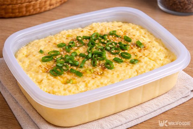 여기서 가장 중요한 단계는 계란물을 체에 한 번 걸러 내열 용기에 담는 것이다. 알끈을 제거하고 기포를 줄여야 표면이 매끈하고 속은 푸딩처럼 촉촉한 식감이 만들어진다.