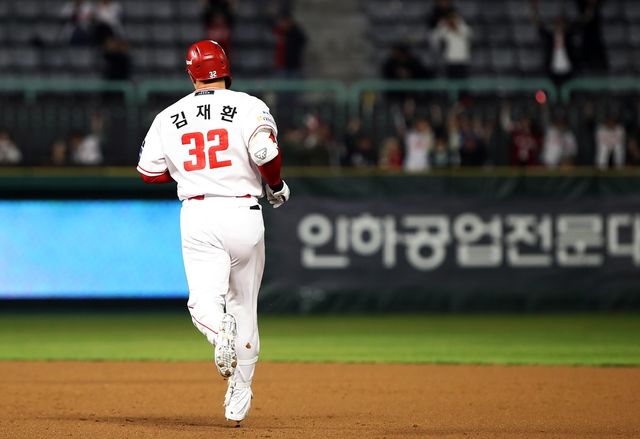 이적 후 12타석 만에 나온 김재환의 첫 안타이자 홈런이었다. 비거리는 105m가 기록됐다. 더그아웃으로 들어온 그는 유니폼의 '랜더스'를 강조하는 세리머니로 이적을 알렸다.