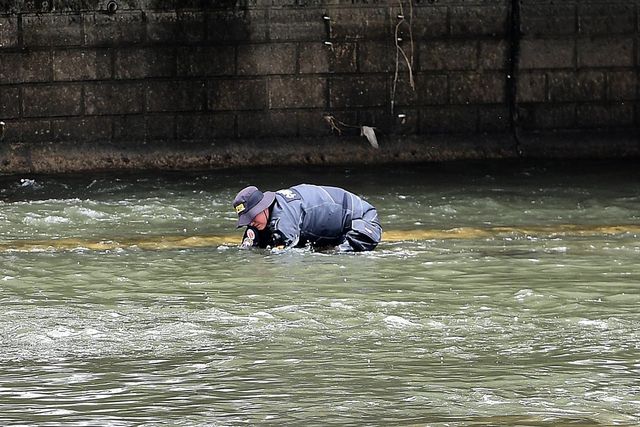 지난달 31일 오전 '신천에 수상한 캐리어가 있다"는 신고를 접수한 경찰이 대구 북구 칠성동 잠수교 주변을 수색하고 있다. / 뉴스1