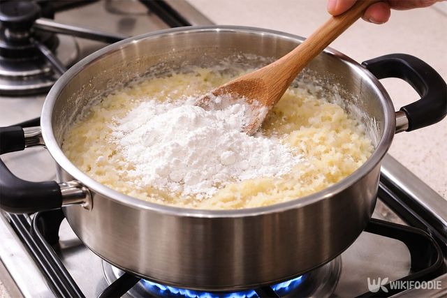 4. 반죽이 덩어리지며 걸쭉해지면 불을 완전히 끈다.
