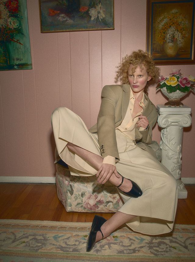 CELINE 울 재킷, 셔츠, 팬츠, 메리제인 슈즈는 모두 Celine.