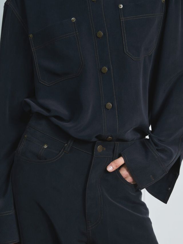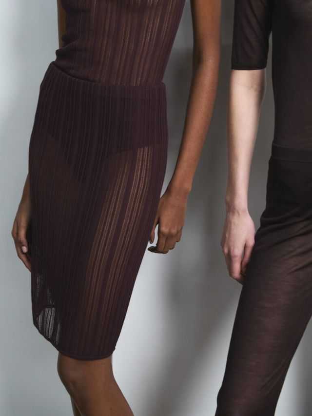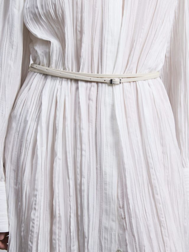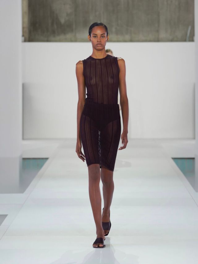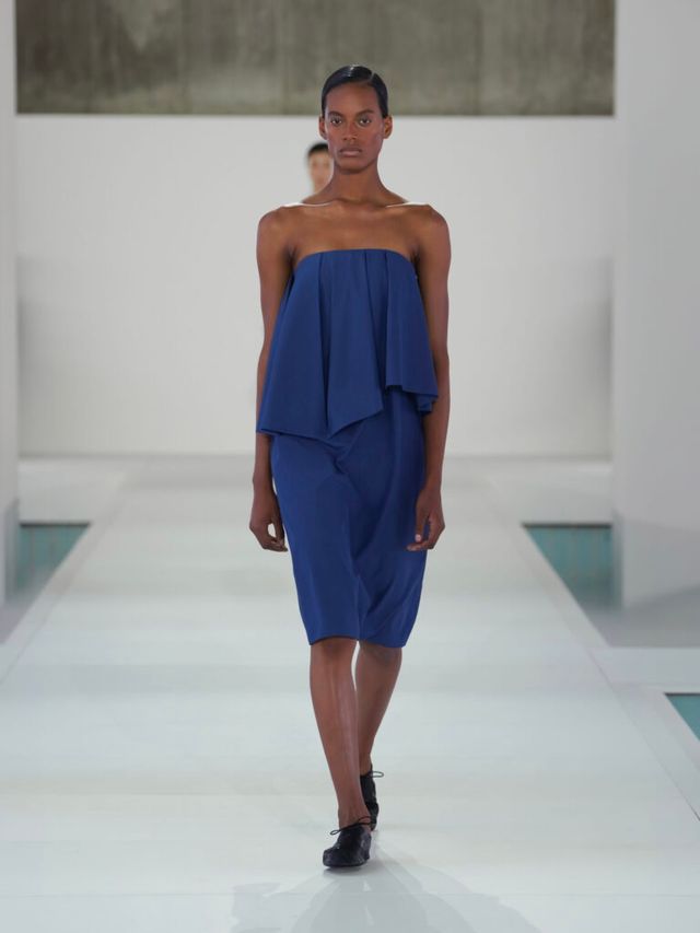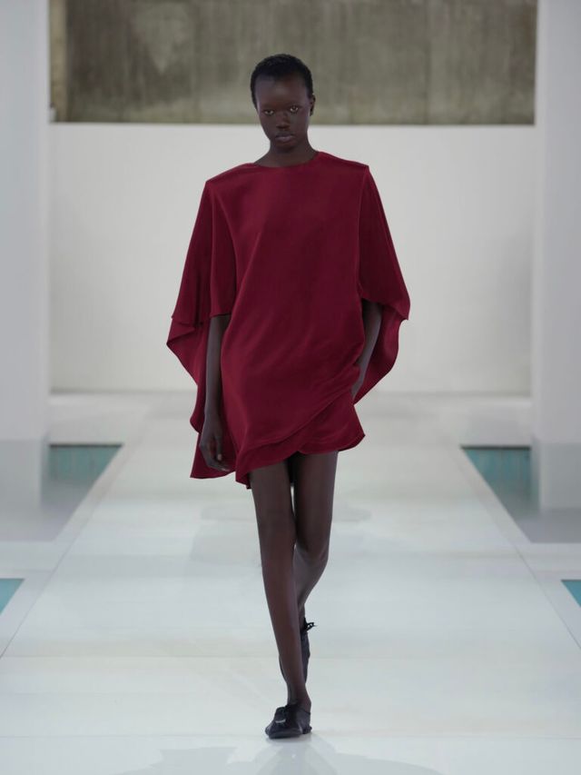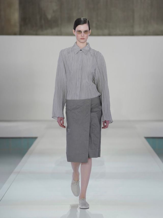 이처럼 이번 컬렉션에서는 소재의 변주가 특히 눈에 띄었습니다. 그 중심에는 실크가 있었는데요. 컬렉션 전반에 걸쳐 반복적으로 등장하며 다양한 방식으로 활용되었죠. 우아하게 드레이핑된 오프숄더 드레스와 정교한 주름 디테일이 돋보이는 셔츠가 그 예입니다. 미묘한 광택을 띠는 가죽과 기능성 소재는 실루엣을 더욱 강조했으며, 은은하게 비치는 소재는 움직임에 따라 신체 라인을 드러내며 절제된 세련미를 완성했습니다.