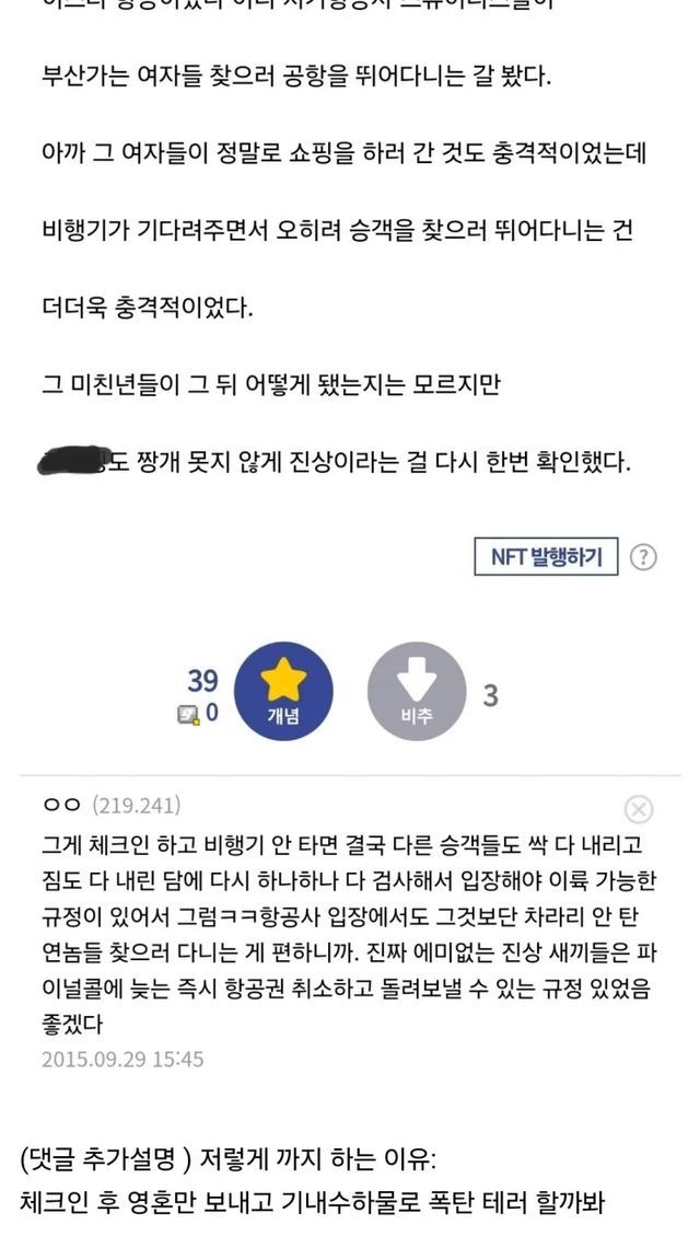 추가적인 디테일을 보면 이러한 행태는 특정 개인의 도덕성 문제를 넘어 '진상 고객'이라 불리는 사회적 현상의 일면을 드러낸다. 항공사 입장에서는 단 한 명의 승객이라도 탑승하지 않을 경우 전체 승객의 수하물을 다시 전수 조사해야 하는 위험 부담을 안게 된다. 이에 따라 승무원들은 기내 면세 구역과 화장실, 식당가 등을 샅샅이 뒤지며 해당 승객을 찾아나서는 '파이널 콜' 상황을 맞이하게 된다. 사진 속 게시물에 달린 댓글에서도 지적하듯, 체크인 후 영혼만 보내고 기내 수하물로 위해 물품을 반입할 가능성 등 보안상의 이유로 인해 항공사는 승객 확인에 사활을 걸 수밖에 없는 구조적 한계를 지니고 있다.