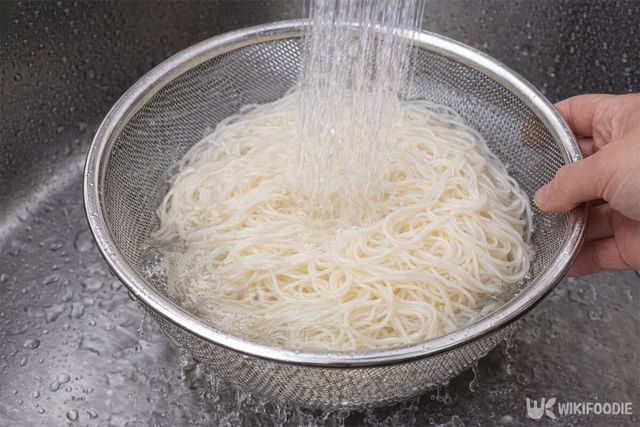 소면은 삶은 뒤 찬물에 여러 번 세게 헹궈야 한다. 면에 남아 있는 전분기를 깨끗이 제거해야 면발이 더 쫄깃해지고 시간이 지나도 잘 불지 않는다.