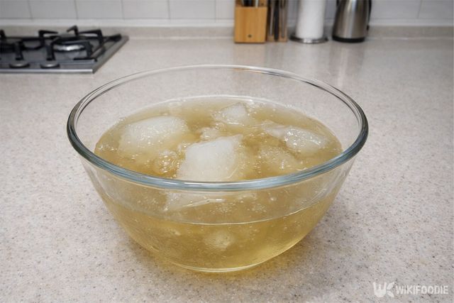 3. 육수는 냉동실에 잠시 넣어 살얼음이 생길 정도로 차갑게 만든다.