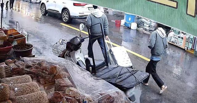 8초 분량의 영상에서 A 씨는 비를 맞은 채 왼손을 점퍼 주머니에 넣고, 오른손으로 시신이 담긴 캐리어를 끌며 왕복 2차선 도로를 걸었다. 이동 도중 주변을 의식한 듯 고개를 돌리는 모습도 포착됐다.