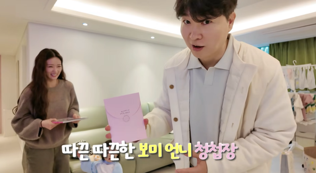 박수홍의 딸 재이와도 살갑게 논 뒤 윤보미는 분홍 봉투에 담긴 청첩장을 박수홍에게 전달하며 훈훈함을 자아냈다.