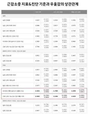 (표 1) 근감소증 요인별 우울감 위험도 분석 결과표