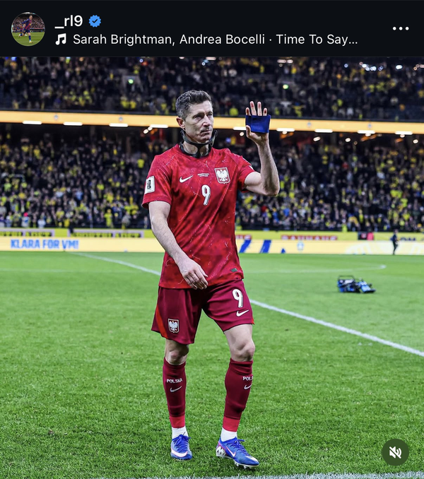 레반도프스키는 37세로 선수 생활 황혼기에 접어들었다. 크리스티아누 호날두나 루카 모드리치처럼 이례적인 ‘롱런’을 할 가능성이 높은 선수로 여겨지지만, 그때 상황은 누구도 알 수가 없다. 레반도프스키는 스웨덴전 패배 후 자신의 소셜미디어(SNS)에 주장 완장을 왼손에 끼운 사진을 게재했다. 배경음악은 ‘Time to say goodbye(작별할 시간)’여서 해외 매체들은 이를 레반도프스키의 국가대표 은퇴 암시 게시물로 보고 있다.
