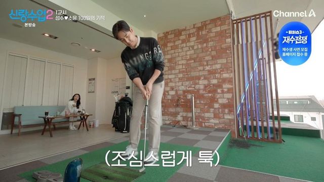 첫 번째 코스는 야외 스크린 골프장이었다. 두 사람은 소원권을 걸고 골프 대결을 펼쳤다. 오랜만에 골프채를 잡은 박소윤은 첫 스윙이 예상보다 잘 맞자 “해볼 만하겠어”라며 자신감을 드러냈다. 하지만 공이 잇달아 해저드와 벙커에 빠지며 분위기가 달라졌다. 김성수가 웃음을 참는 표정을 짓자 박소윤은 “표정 관리 안 되시는 것 같은데요?”라며 시무룩한 반응을 보였다. 승부는 김성수의 완승으로 끝났다.