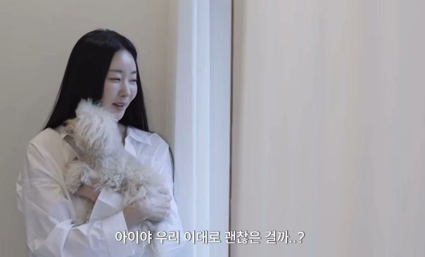 또한, 화이트 셔츠 차림으로 반려견을 품에 안은 사진에서는 앞서 보여준 화려함과는 상반된 내추럴한 매력을 선보였다.