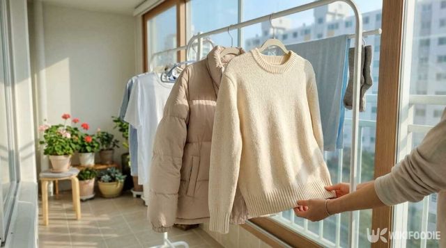 입었던 겨울옷은 이미 수분을 머금고 있는 상태다. 이 상태에서 바로 세탁하면 냄새가 섬유 깊숙이 남는 경우가 있다. 그래서 먼저 햇볕과 바람을 이용해 2~3시간 정도 말려주는 것이 좋다. 이렇게 하면 옷 속 수분이 빠지면서 냄새 원인이 줄어든다.