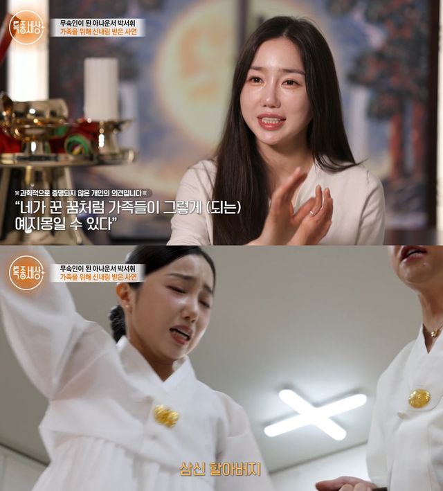2일 공개된 MBN '특종세상'에는 무속인이 된 걸그룹 출신 아나운서 박서휘의 이야기가 담겼다.