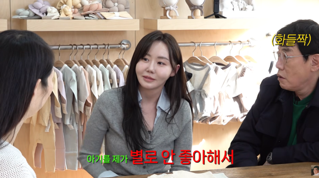 육아용품 사장이 “고민이 든다면 낳지 않는 걸 조언하는 편”이라고 하자, 이예림은 “책임져야 한다는 생각이 많다. 쉽게 결정하기 어렵다”고 2세 계획이 없는 이유를 밝혔다.