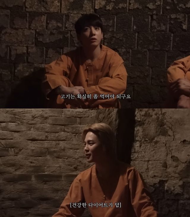 지민은 "잘 먹고 돌아와서 다이어트를 했다"며 "전에는 안 먹고 많이 해봤는데 이제는 못 할 것 같다. 이제는 너무 힘들다. 젊어서 됐던 것 같다"고 다이어트 고충을 토로했다. 정국 또한 "고기를 먹어야 한다"며 "저탄, 저지방, 고단백"이라고 식단을 언급했다.