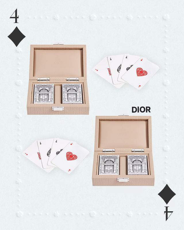 더도 말고, 덜도 말고 플레잉 카드 하나면 충분합니다. 가장 클래식하지만, 카드 하나로 원 카드, 포커, 도둑잡기, 블랙잭 등 다양한 걸 시도 할 수 있으니까요. 여기에 디올 감성을 얹는다면? 30 Montaigne의 아이코닉한 부티크 전면을 그려낸 피에트로 루포의 디자인을 장식한 카드 세트는 재미를 주는 동시에 시각적 즐거움을 선사합니다.