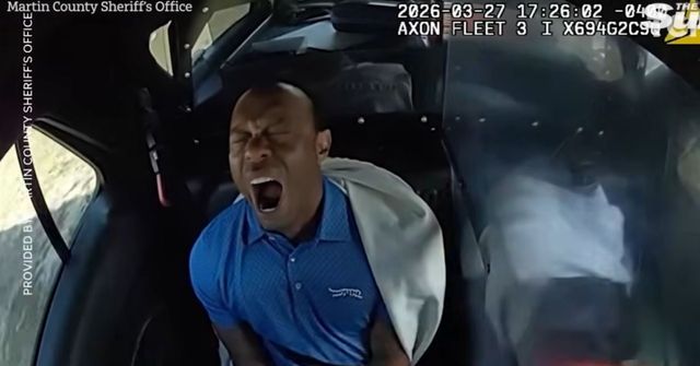 당시 미국 플로리다주 마틴카운티 보안관 사무소가 공개한 경찰관 바디캠 영상. 타이거 우즈가 하품을 하고 있다. / 유튜브 'he US Sun News 및 US Sun Sport'