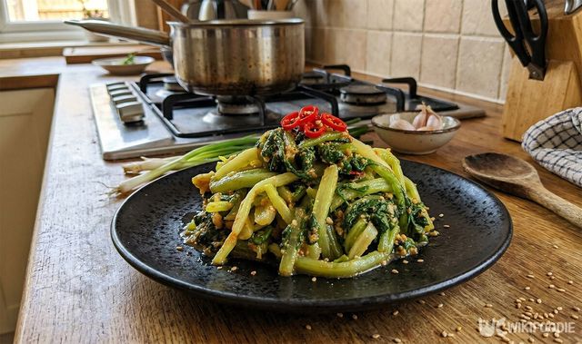 → 삶은 어린 열무 300g, 참깨 2큰술, 다시마 우린 물 2큰술, 된장 2큰술, 고추장 1큰술, 물 1큰술, 다진 마늘 1/2큰술, 다진 대파 1큰술, 생강즙 약간, 설탕 1큰술, 참기름 1/2큰술, 홍고추 1개