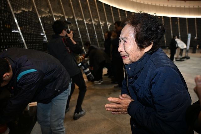 3일 오전 제78주년 4·3 희생자 추념식이 열린 제주4·3평화공원 위패봉안실에서 추모객이 눈물을 흘리고 있다. 강희만기자