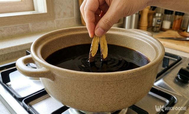 명이나물 장아찌의 핵심은 간장 물의 조화다. 냄비에 진간장, 국간장, 물, 설탕, 매실청을 분량대로 넣는다. 이때 비결은 감초 2개를 넣는 것이다. 감초는 인위적이지 않은 은은한 단맛을 더해 국물의 깊이를 더해준다.