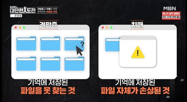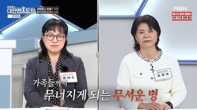 5일 오전 MBN ‘임성훈의 대단한 도전’에서는 노인 5명 중 1명이 앓고 있다는 치매의 위험성이 조명됐다. 방송에는 치매 간병 가족 윤혜숙(61) 씨와 건망증으로 일상생활에 어려움을 겪고 있는 김경숙(66) 씨가 출연, 4주간의 건강 개선 솔루션에 도전했다.