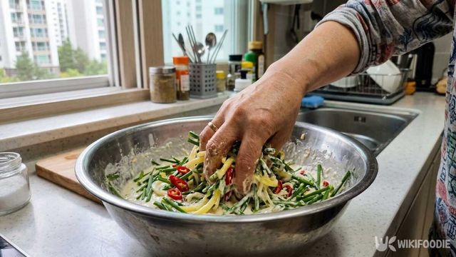 달래는 뿌리 안쪽에 모래가 끼어 있는 경우가 많다. 모래집을 손으로 꼼꼼히 제거한 뒤 흐르는 물에 헹궈야 씹을 때 이물감이 없다. 반죽 농도는 숟가락으로 떠서 천천히 흘러내리는 정도가 적당하다. 너무 되직하면 전이 뻑뻑해지고, 너무 묽으면 연근이 반죽에 붙지 않는다.
