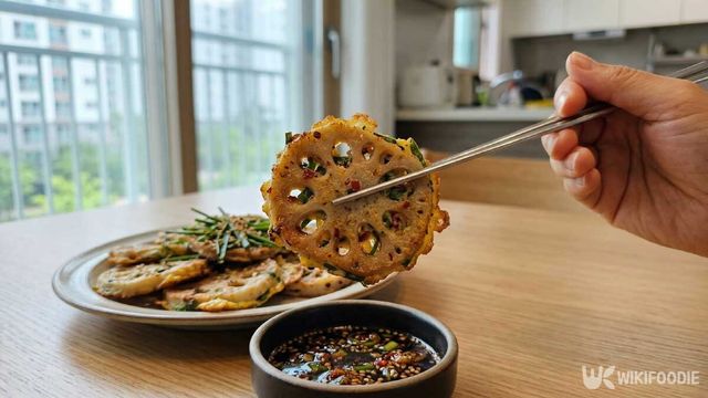 불 조절도 맛을 결정하는 요소다. 중간불을 유지해야 겉이 노릇하게 익으면서 속도 고르게 익는다. 불이 너무 세면 겉만 타고, 약하면 기름을 많이 흡수해 전이 눅눅해진다. 뒤집은 뒤 뚜껑을 10초 정도 덮으면 두꺼운 연근 안쪽까지 열이 전달돼 훨씬 먹기 좋아진다.