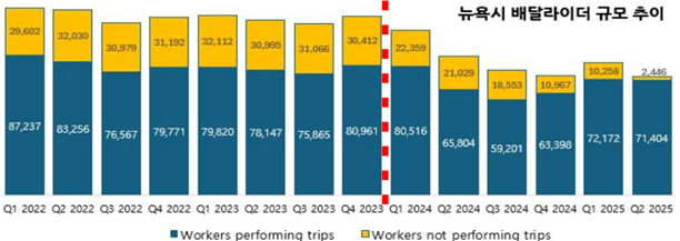 플랫폼 기업들이 팁 버튼은 가릴 수 있을지 몰라도 권리의 시계를 멈출 수는 없었다. 2023년부터 시행된 뉴욕시 라이더 최저임금은 3년째 큰 문제 없이 시행되고 있다. 아니, 문제를 일으키긴커녕 그동안 플랫폼의 폐해로 지적된 다양한 문제점을 해결해 주었다.