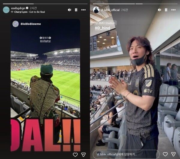 지드래곤은 5일 자신의 사회관계망서비스(SNS)를 통해 "엘래리(엘에이)"라는 재치 있는 문구와 함께 축구 경기장에서 관람 중인 뒷모습 사진을 게시했다. 같은 날 대성 또한 미국 LA BMO 스타디움을 위치로 태그하며 경기를 즐기고 있는 자신의 모습을 공유해 팬들의 눈길을 끌었다.