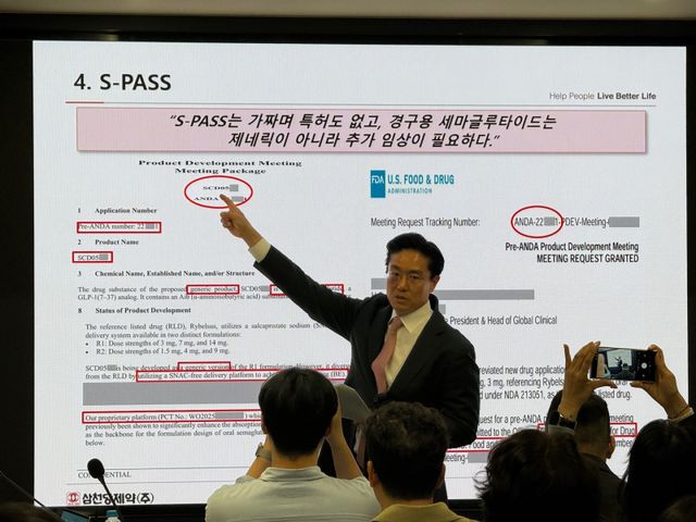 또한 미국 모 회사와 최근 체결한 15조원 규모의 경구용 세마글루타이드(비만약) 공시에 대해서는 "거래소가 혹시 모를 투자자의 피해를 막기 위해 품목 허가 전 미래 매출 추정치를 공시문에 직접기재 하지 못하게 하고 있다"며 "좋은 제품이라 미국 파트너가 9:1 수익 분배라는 '독소조항'에도 응한 것"이라고 강조했다.