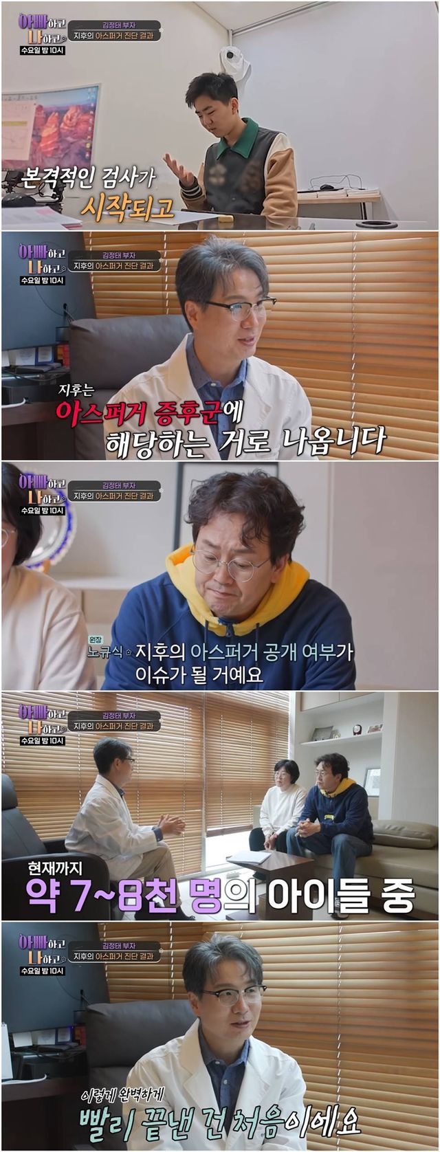배우 김정태의 장남 지후가 아스퍼거 증후군 진단과 동시에 상위 0.5%의 영재라는 놀라운 검사 결과를 받았다.