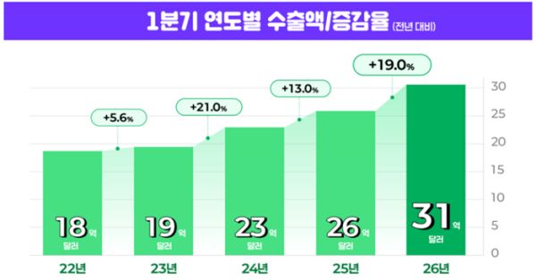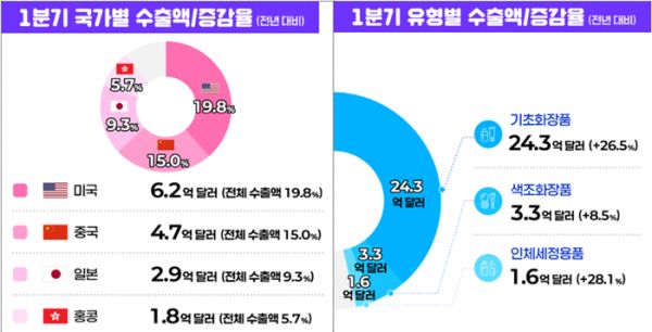 식품의약품안전처(이하 식약처)는 우리나라 화장품의 2026년 1분기 수출액이 지난해 1기보다 19% 증가한 31억달러(잠정)로 역대 모든 분기 중 최대치를 기록했다고 밝혔다.