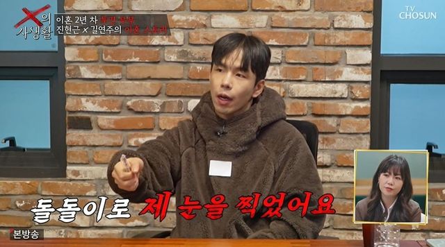진현근이 길연주의 결벽증을 폭로하자 길연주는 “혼자 살 때도 깔끔한 성격이었는데, 결혼 후 스트레스 때문에 심해졌다”고 밝혔다. 진현근은 “X는 알코올 치료도 받았다. 술 마시면 언성이 높아지고, 감정 조절이 안 된다”라며 “아기 100일 정도 됐을 때, X가 술 먹고 젓가락을 던지고, 돌돌이로 제 눈을 찍었다. 두 번째는 제가 애를 안고 있었는데, 제 눈을 발로 찼다. 그래서 안와골절이 왔다”고 했다.