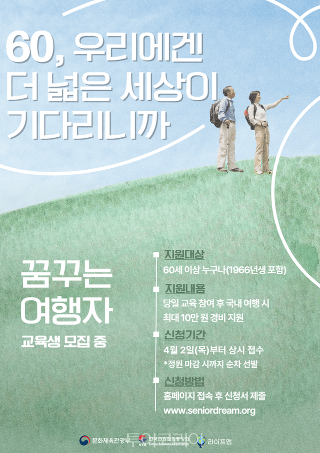 한국관광협회중앙회는 문화체육관광부와 손을 잡고 60세 이상 시니어들이 여행의 기획부터 실행까지 주도적으로 이끌 수 있도록 돕는 ‘2026 꿈꾸는 여행자’ 프로그램을 본격 가동한다. 이번 수강생 모집은 서울과 대구, 전주, 창원을 시작으로 전국에서 순차적으로 진행될 예정이다.