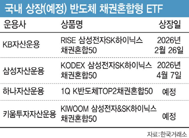 다른 운용사에서도 유사 상품 출시를 준비 중이다. 키움투자자산운용은 전날 한국거래소로부터 ‘KIWOOM 삼성전자&SK하이닉스채권혼합50’ ETF 상장을 위한 코드를 부여받았다. 하나자산운용 역시 ‘1Q K반도체TOP2채권혼합50’이라는 이름으로 비슷한 상품을 출시할 예정이다.