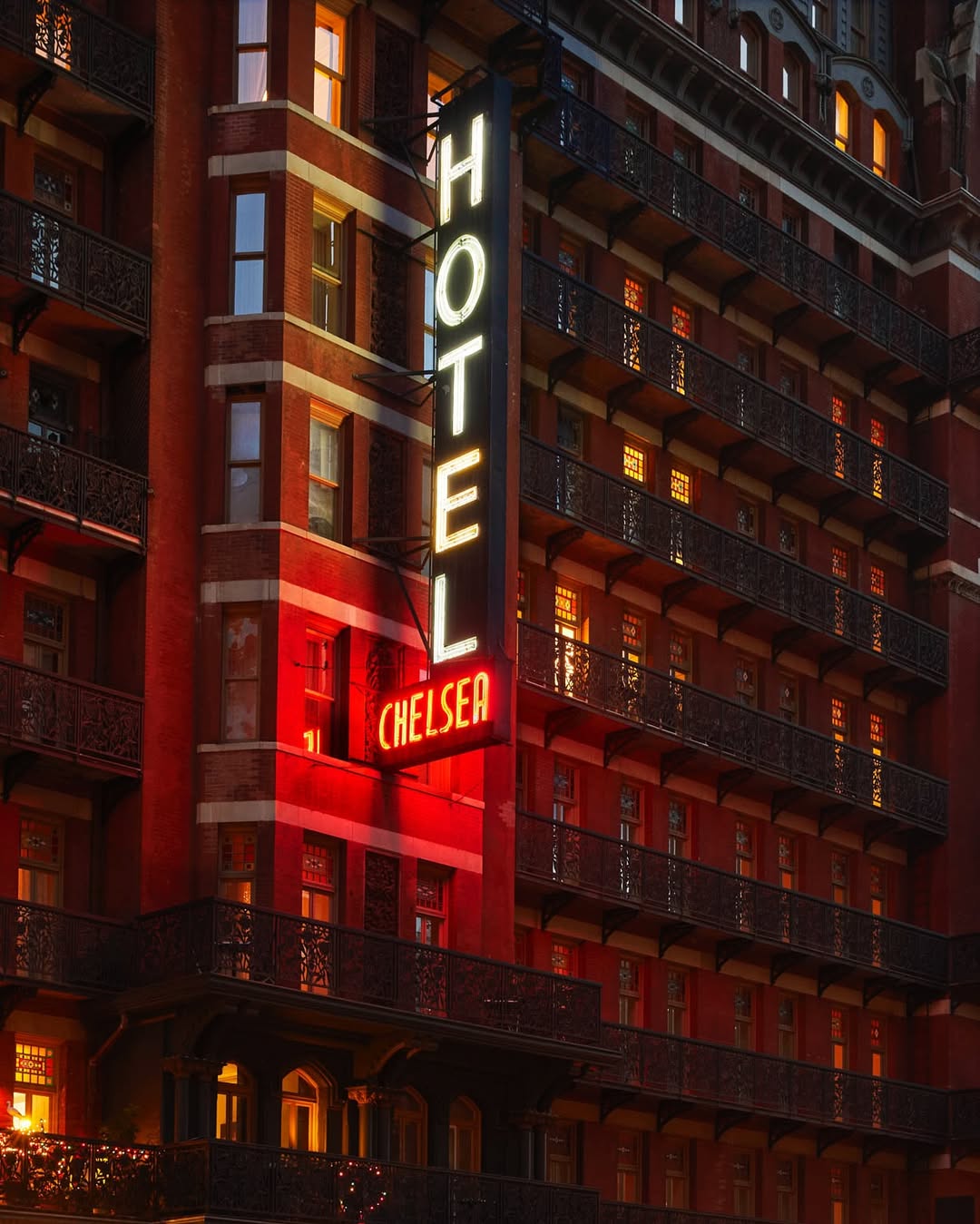 뉴욕의 더 호텔 첼시는 예술가가 사랑한 호텔을 이야기할 때 빠질 수 없는 장소입니다. 네온사인과 붉은 벽돌, 스테인드글라스가 어우러진 독특한 분위기는 뉴욕 보헤미안 문화의 상징과도 같습니다. 밥 딜런, 레너드 코언, 재니스 조플린 같은 음악인들과 앤디 워홀이 이곳에서 창작 활동을 이어갔습니다. 특히 1966년, 워홀은 이 호텔에서 영화 ‘첼시 걸즈(Chelsea Girls)’를 촬영하며 첼시의 예술적 정체성을 더욱 강화했습니다.