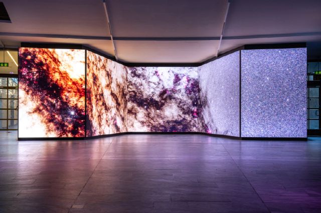 삼성전자는 자이스 천체투영관 로비에 LED 사이니지 ‘IEA 시리즈’ 캐비닛 85개를 활용한 V자형 디스플레이를 설치했다. 2.0㎜의 미세한 픽셀 피치와 3840㎐의 고주사율을 지원하며, 카메라로 촬영해도 화면 깜빡임 없이 정교한 화질을 유지한다. 천체투영관은 이러한 고성능 설계를 바탕으로 난해한 과학 콘텐츠와 생생한 우주 영상을 관람객들에게 더욱 사실적으로 전달할 수 있게 됐다고 회사 측은 전했다.