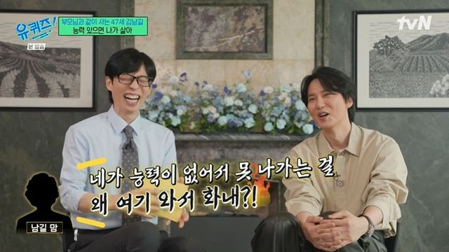 김남길의 어머니는 아들이 효자란 말에 코웃음 치며 “사람들은 우리가 너랑 살아주고 있단 걸 모를 거다”라고 했다고. 김남길은 “집이 수원이라 서울까지 가면 머니까 혼자 화를 낸다. 그러면 엄마가 ‘네가 능력이 없어서 못 나가는 걸 왜 여기 와서 화를 내냐’고 하신다”라고 밝혔다. 김남길은 “능력 있으면 나가라는데, 반박을 못한다. 서울 집값이 너무 비싸다. 배우들이 다 서울로 오라고 하는데, 나도 가고 싶다. 서울에 살 돈이 없어서 그렇다. 집값 내릴 때까지 기다리는 거다”라고 털어놓았다.